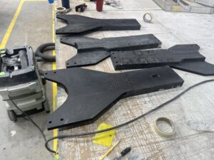Recently, our team finished a robotic end-of-arm piece, made of carbon fiber to be used as a pick head arm that will hold the paddle tool and be used in a machine built by @ Engineering Automation of Maine.